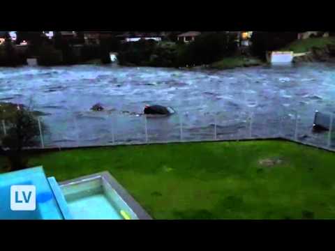 La subida de más de 5 metros del arrollo Los Chorrillos, al oeste de Carlos Paz, provocó destrozos e inundó casas el viernes 14 de marzo de 2014. Un vecino de la villa serrana registró el momento en que un auto es arrastrado por las aguas hacia el interior del lago San Roque.