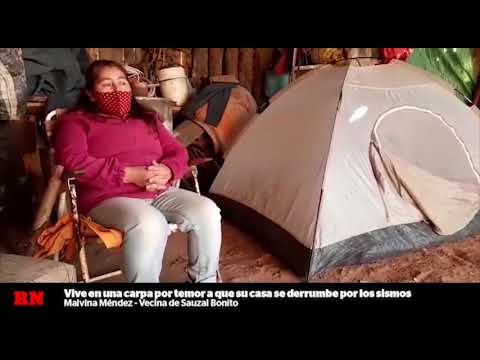 Hace una semana que Malvina y su familia pasan la noche en una carpa debajo de un tinglado de madera. No se animan a pernoctar en el interior de la vivienda desde que volvieron los temblores en el pueblo ubicado a unos 45 kilómetros de Cutral Co y Plaza Huincul.