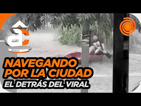 Córdoba: Llovió y salió en kayak a navegar en medio de las calles inundadas